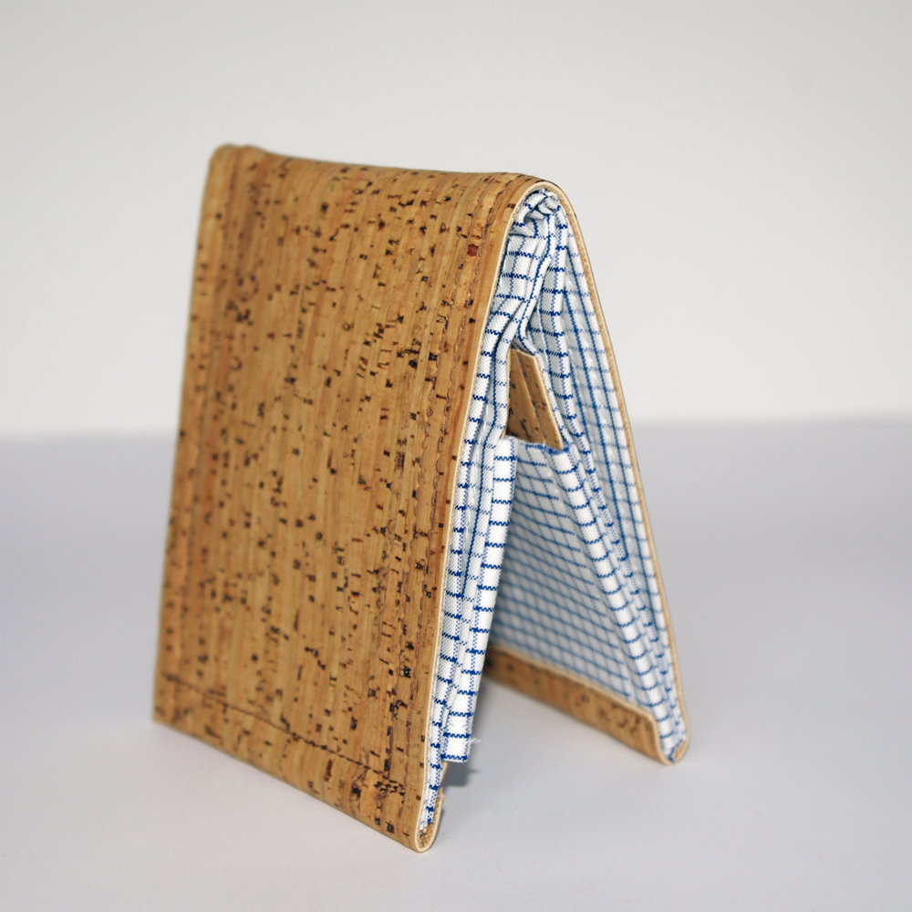 I have utilized a men’s dress shirt for the interior of each of the wallets shown. This upcycled interior complements the eco-friendliness of cork fabric while also remaining stylish.